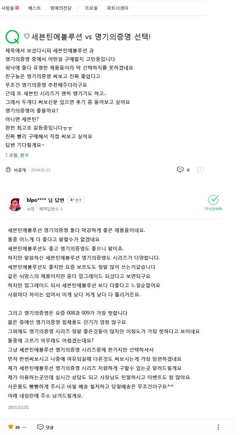 명기의증명 vs 세븐틴에볼루션 2015년 지식인 추천후기